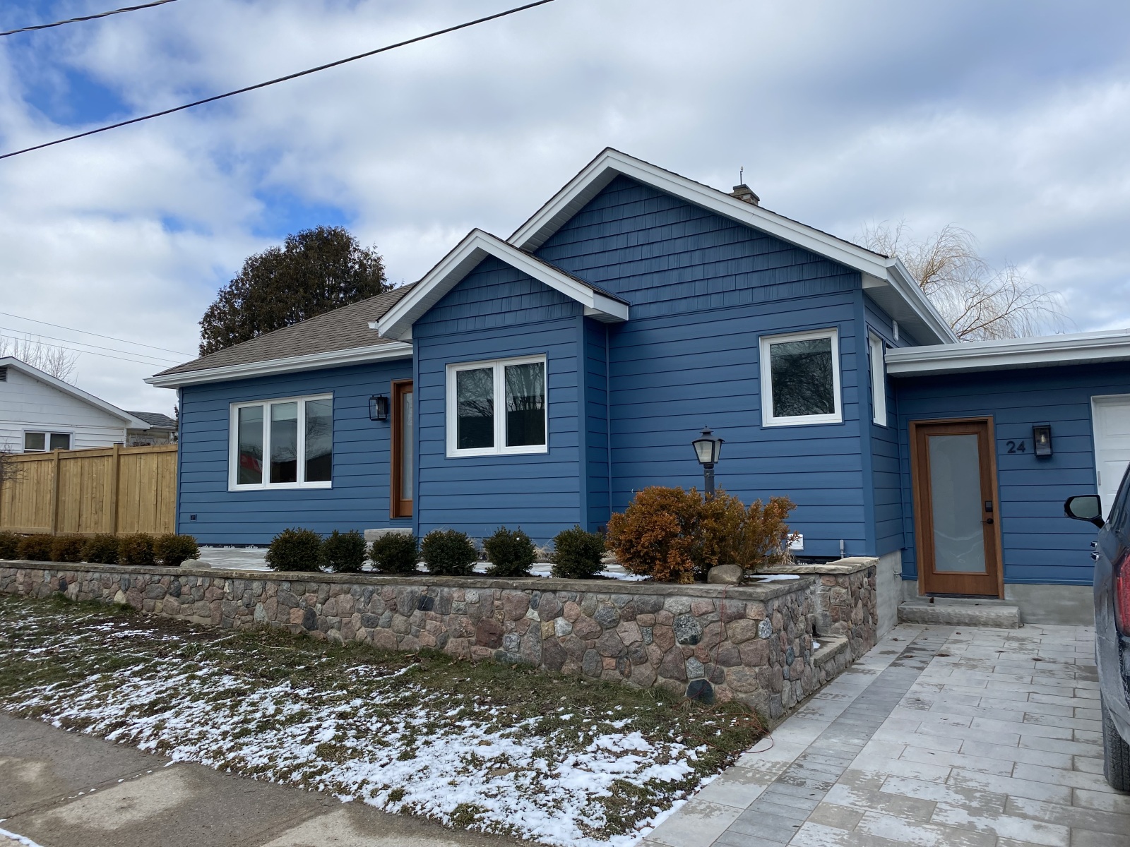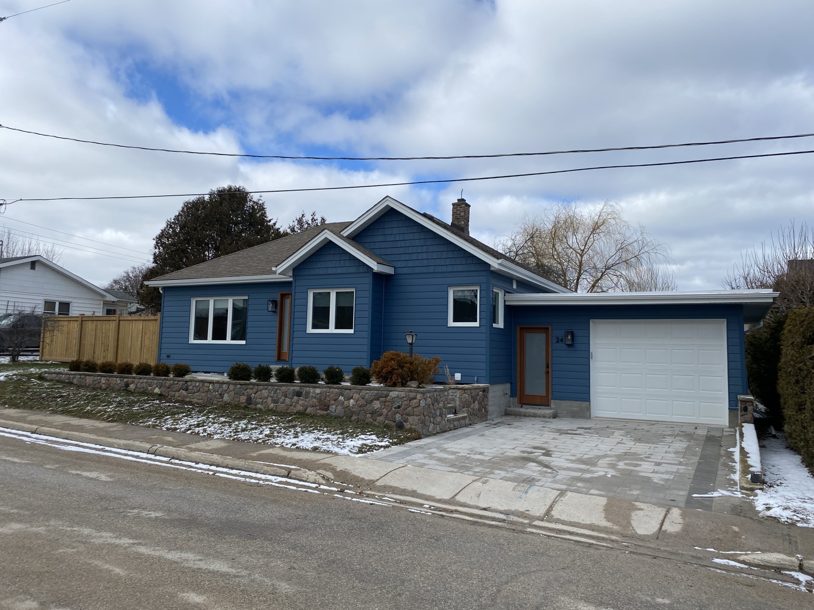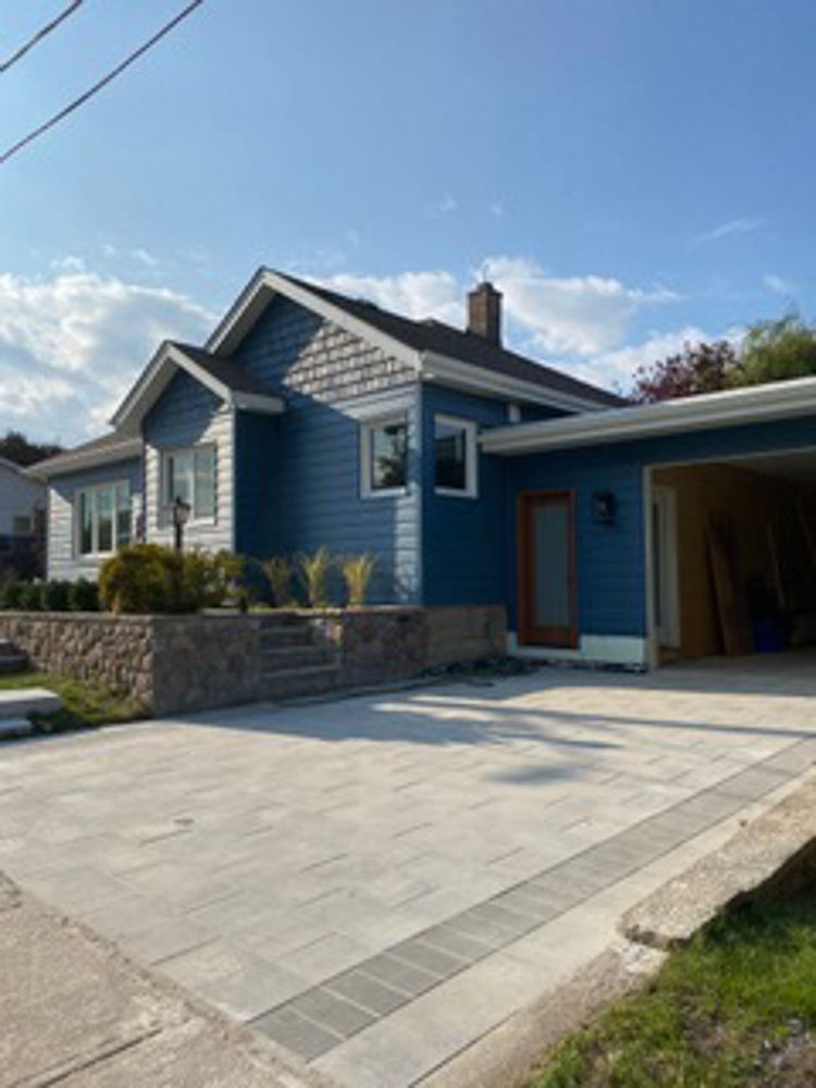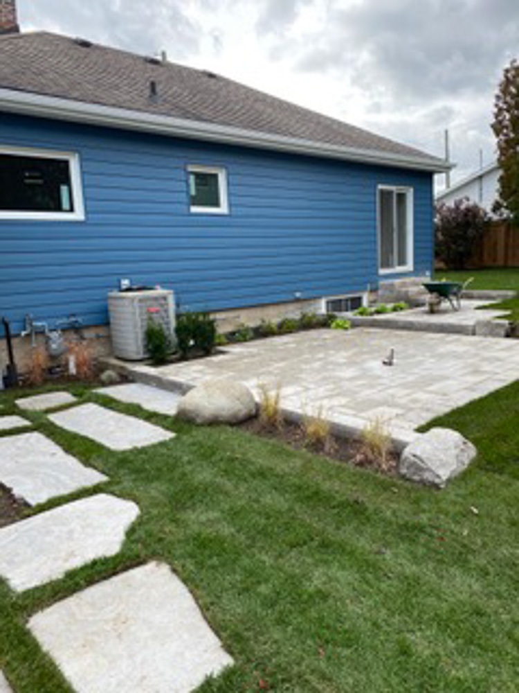 New landscaping and grass completed the project with proper grading away from the home. New interlocking driveway, and front and rear patio stones were also installed.