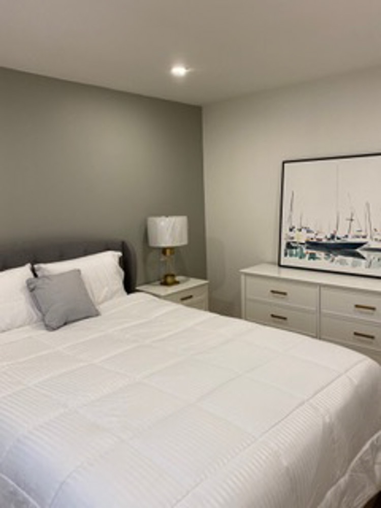 The previous home owner had smoked in the house. All drywall and flooring needed to be removed and replaced in order to get rid of the smell and toxins. After opening up the space by eliminating the narrow out of date room dividers, we designed a new modernized floor plan, which allowed a better traffic flow and took advantage of the expanded floor space. We took a tired two bedroom, one bathroom house and redesigned it into a beautifully updated three bedroom, three full bathroom room home.